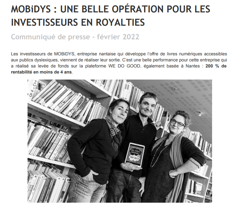Session de découverte de l’investissement en RBF (revenue based financing ou partage de revenus), également connu sous le nom de royalties. L’objectif de ce webinar est de vous présenter les informations clés de la plateforme WE DO GOOD, ainsi que de vous guider sur votre premier investissement. Programme :
