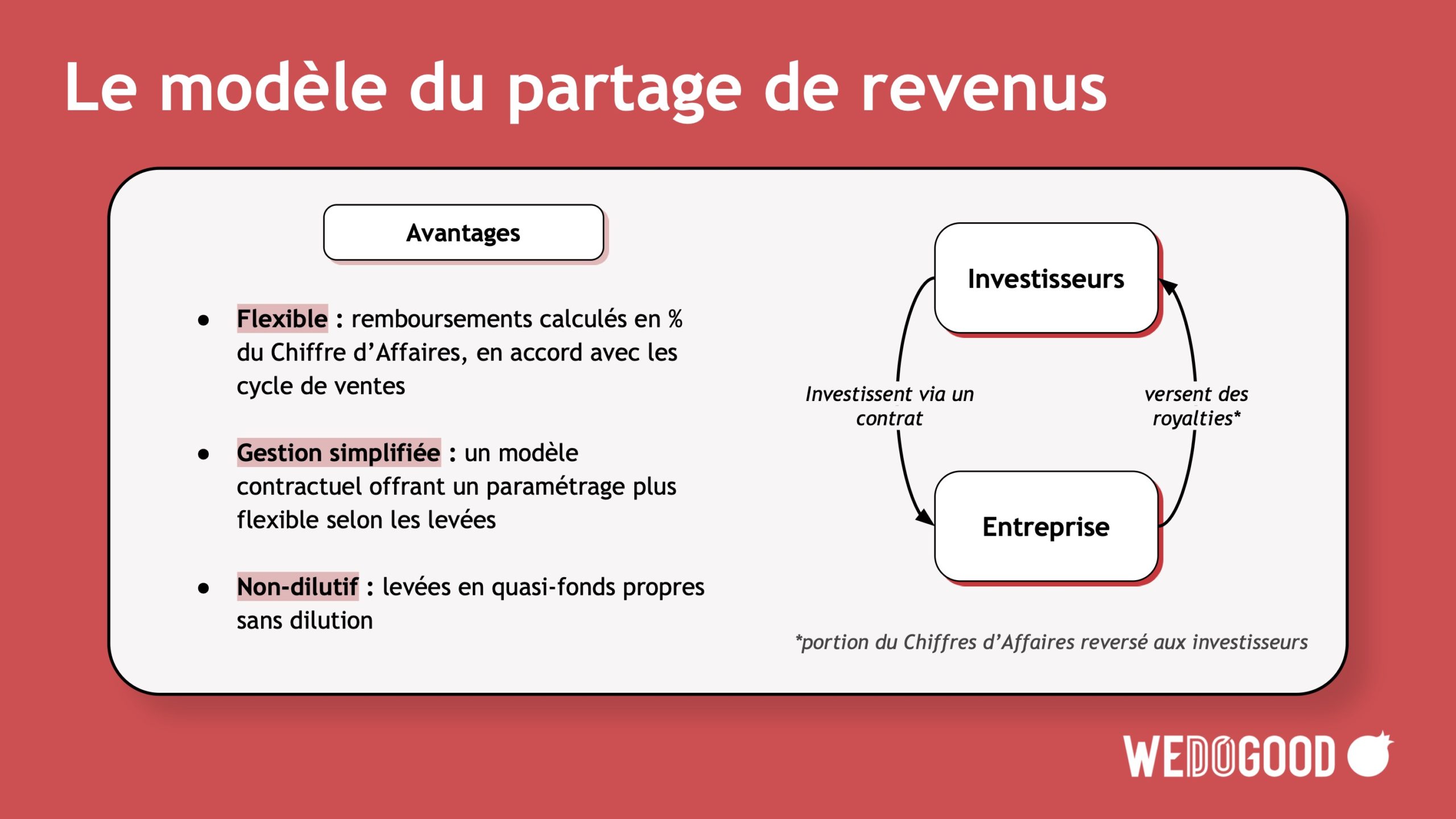 Partagez vos revenus, gardez le contrôle de votre entreprise.